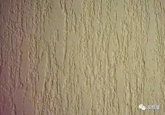 材料批刮上墻后整體收壓平整,在干燥過程中用木刮板工具,帶動砂子在材料表面運動,劃痕形成一定形狀。如果是以中間為圓心的圓圈,就是土倫。如果是橫豎條紋形成類似布紋相交,就是布藝。如果是不規則曲線,以中心向外隨機發散,就是思緒。