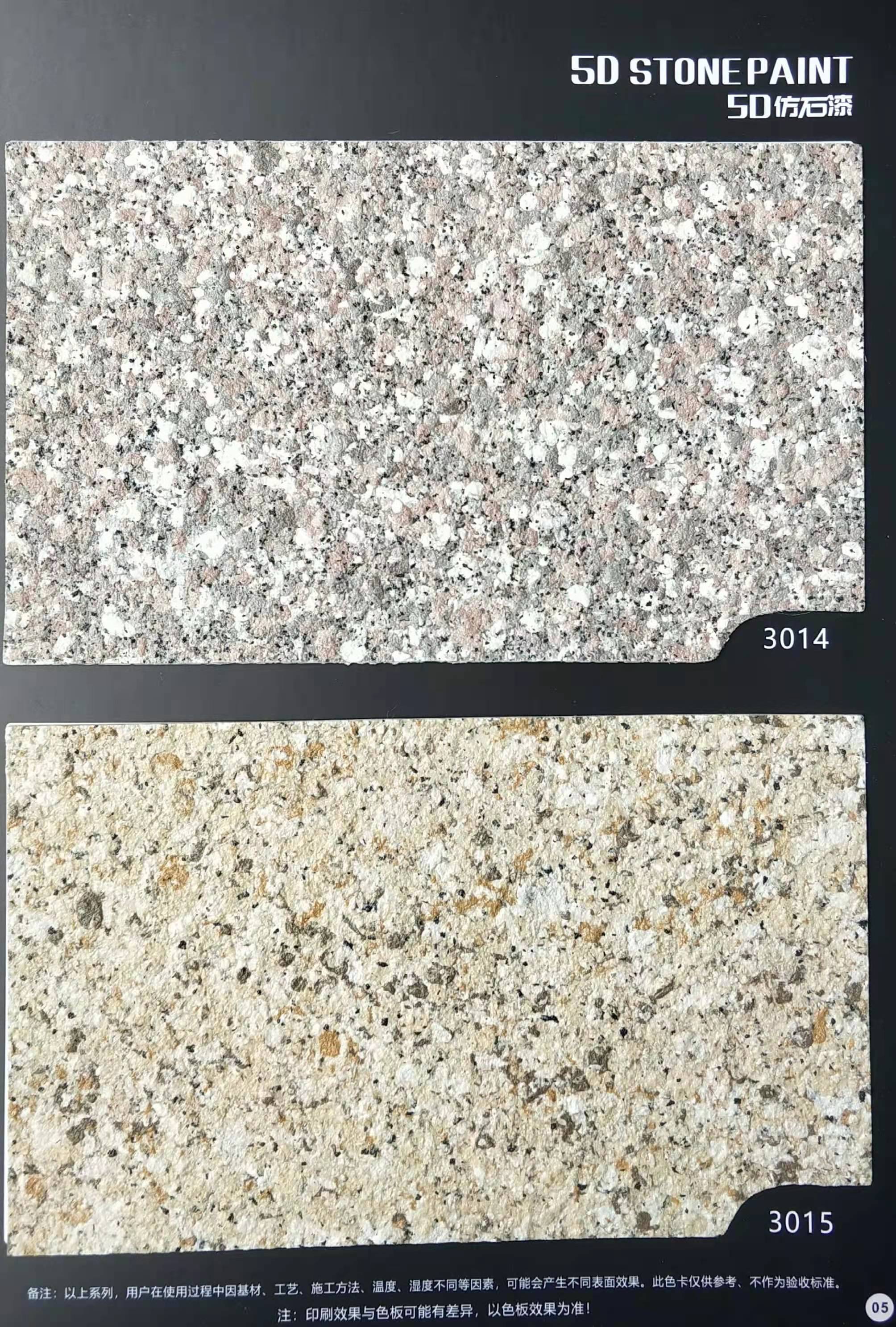 5D仿石漆產(chǎn)品采用純水性配方,符合環(huán)保要求無(wú)輻射。·具有極高的石材仿真度,仿花崗巖、大理石程度可以達(dá)到95%。營(yíng)造出逼真的花崗巖、大理石效果,讓外墻高雅華貴,質(zhì)感強(qiáng)烈,個(gè)性鮮明。