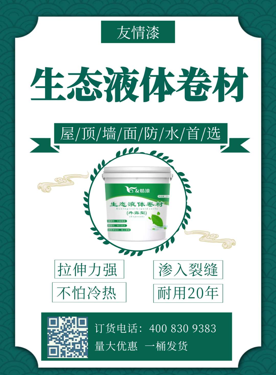 終結(jié)墻面屋頂漏水,選用生態(tài)液體卷材。