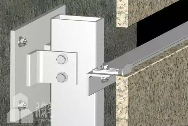 該方法以金屬掛件將飾面石材直接吊掛于墻面或空掛于鋼架之上,不需再灌漿粘貼。其原理是在主體結(jié)構(gòu)上設(shè)主要受力點(diǎn),通過金屬掛件將石材固定在建筑物上,形成石材裝飾幕墻。但材料昂貴做工復(fù)雜成本高,基本屬于土豪專用。