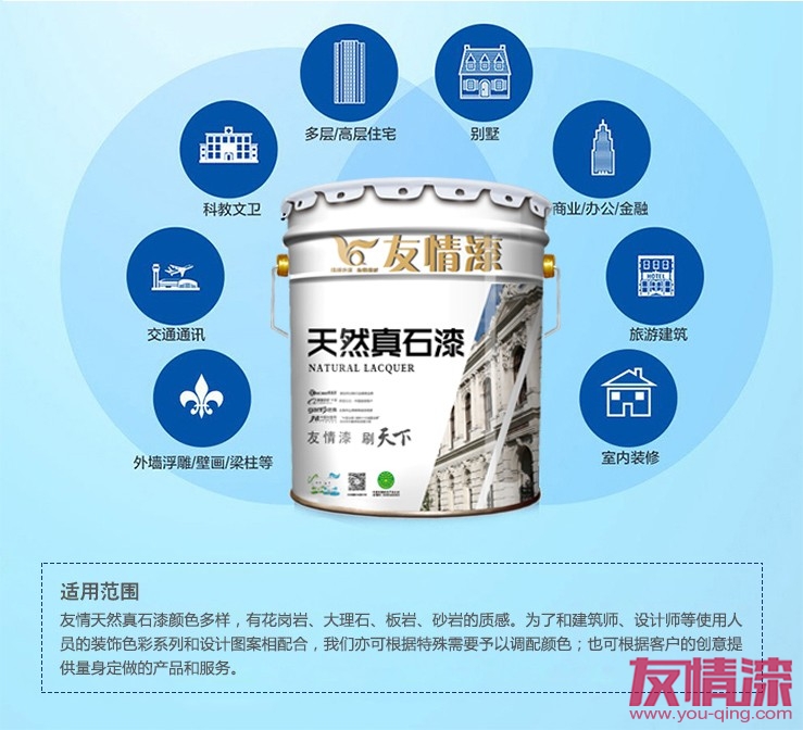 目前,真石漆應(yīng)用范圍更是日益廣泛,發(fā)揮的裝飾作用也在變大。